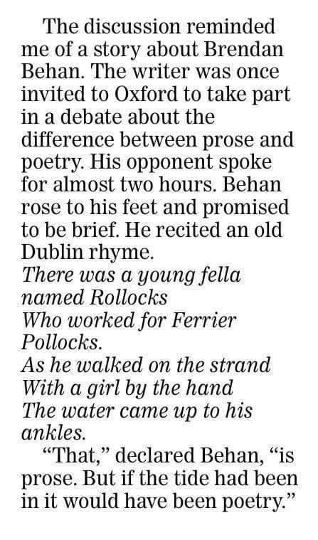 Irish Literary Times Auf Twitter Brendan Behan The Difference Between Prose And Poetry Https T Co Ouqryth4c2 Twitter